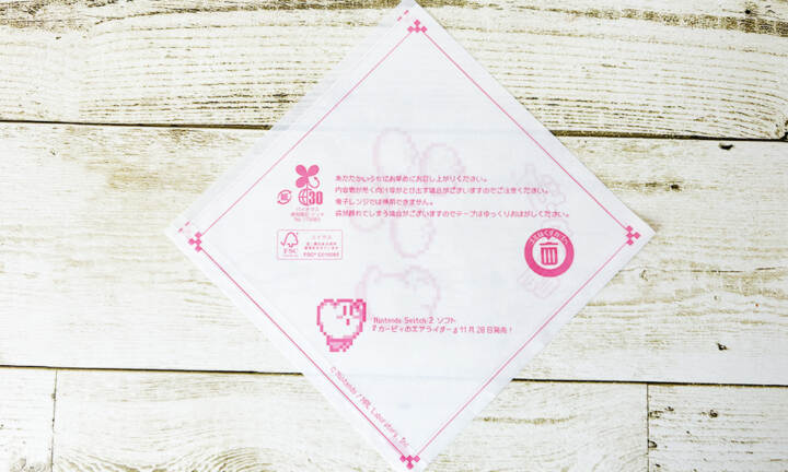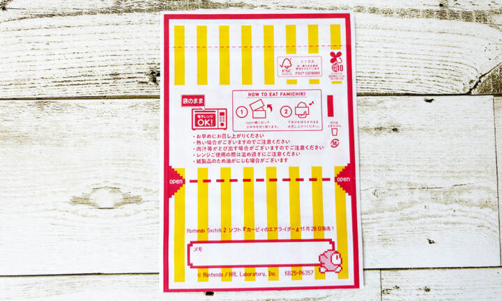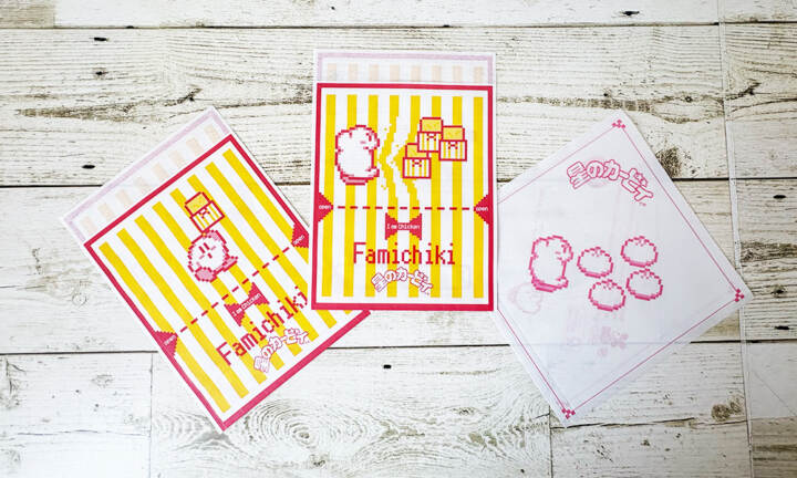 クラシックなドット絵カービィが描かれたオリジナルデザインの袋が登場。