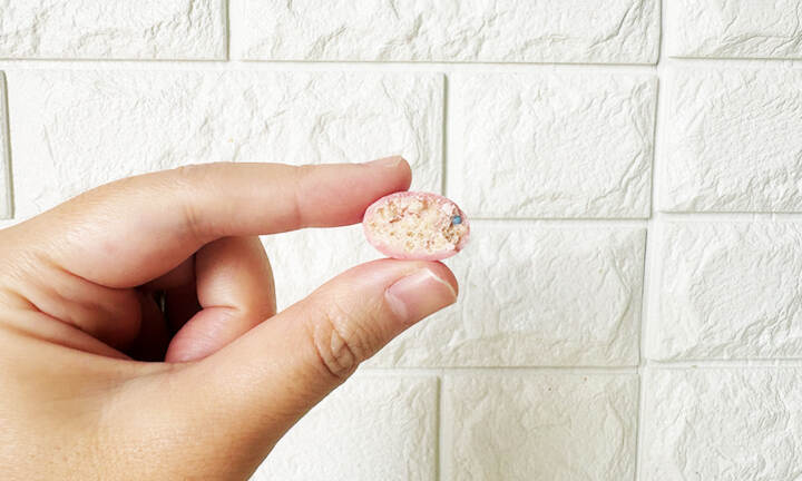 内容:まんまるピンクのパフ入り苺チョコ。サクサク食感がポイント。
