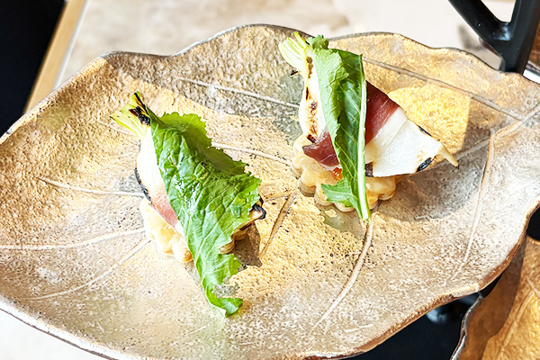 蕪のグリルと自家製鴨のプロシュート 柑橘