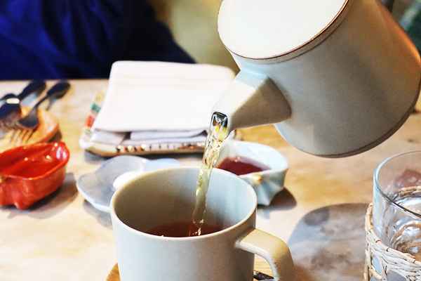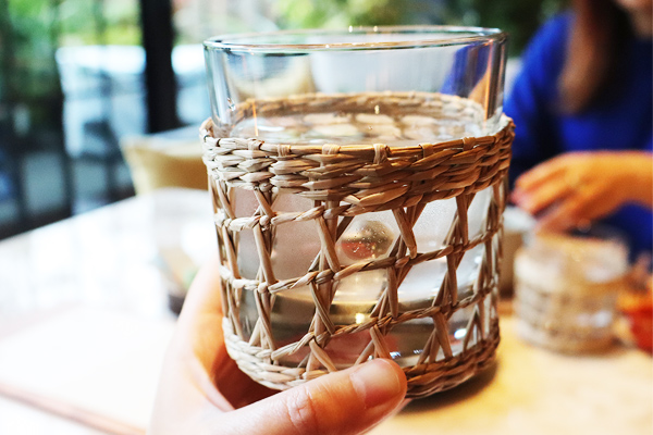 容器もこだわり満載で写真映えします。お水の入ったグラスも自然の温もりを感じました。