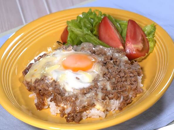 ハンバーグを成形せず、フライパンでまとめて作る新発想のロコモコ。