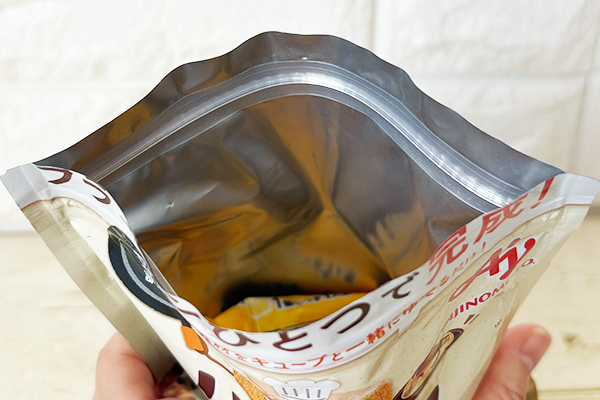 袋はジッパータイプ。キューブは個包装なので保存に便利です。