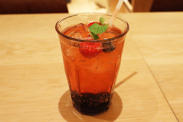 今回は、ミックスベリーソーダを試飲させていただきました。華やかな見た目と味わいで、後味はスッキリ。お料理にもスイーツにも相性抜群です。