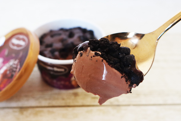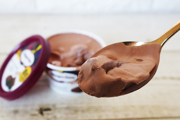 悪魔のささやき『チョコレート』は、スプーンが沈み込みにくいほどねっちり濃厚。口に入れるとカカオの深みがグッと押し寄せ、デザートを食べた満足感がすごい。