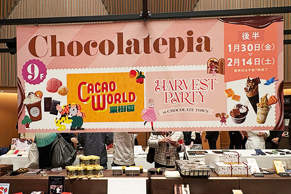 さらに、前半・後半で、参加ショップ・ブランドが入れ替わります。前半1月21日(水)〜1月29日(木)は、47チョコ列島とチョコ菓子喫茶店、後半1月30日(金)〜2月14日(土)はCACAO WORLD 果樹園とHARVEST PARTYと2部構成になっていて、期間中最初から最後まで楽しめちゃいそうです。