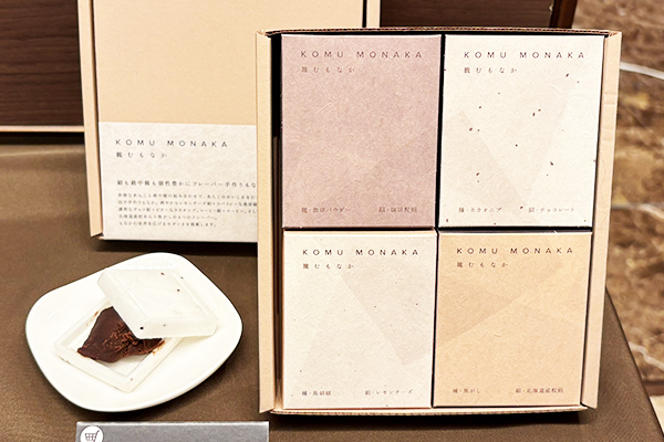 昭和25年創業の老舗あんこ屋が手がける和菓子店。「籠む(KOMU)」は“精巧・ぎっしり詰まる”という古語に由来します。チョコレート餡を使用した最中は、食べる際に餡を自分で入れるのでパリパリ香ばしく、和菓子派の方への手土産にもオススメです。