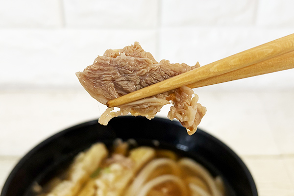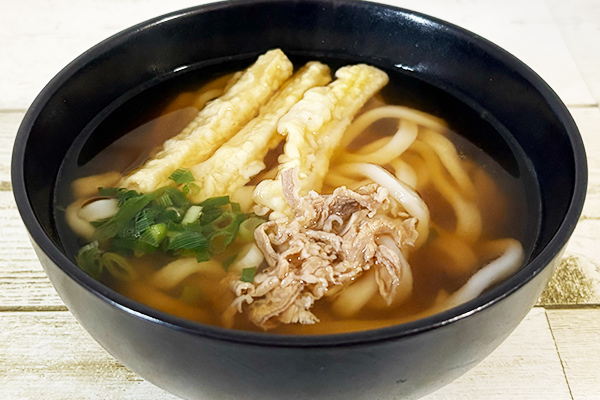 続いては、全国的な人気を誇る福岡うどんを再現した「肉ごぼう天うどん」です。