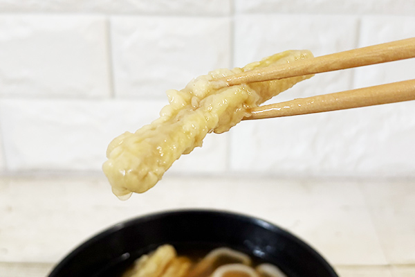 トッピングには、存在感のあるスティック状のごぼう天が3本入り、食べ応えも十分です。