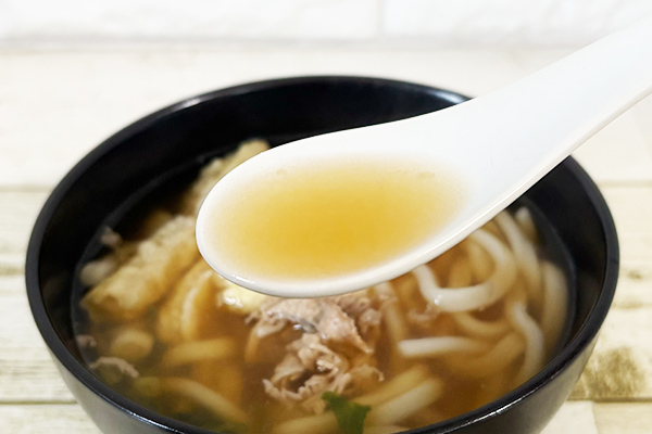 つゆは九州らしい甘みをベースに、さば節粉末やいわし煮干し粉末を加えることで、だしのコクもしっかりと感じられます。自宅にいながら、福岡のうどん店を思い出させてくれるような、完成度の高い一杯です。