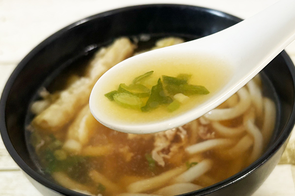 ひと口噛むと、しっかりとした弾力があり、噛み返す力の強さに驚かされます。讃岐うどん職人の技に学び、生地を縦横に伸ばす独自の「綾・熟成法」を採用しているとのことですが、その成果は一口で理解できます。