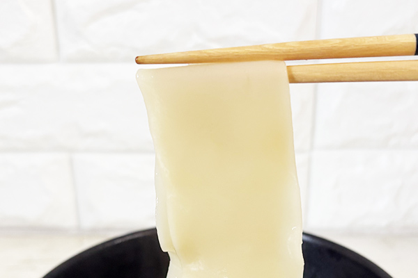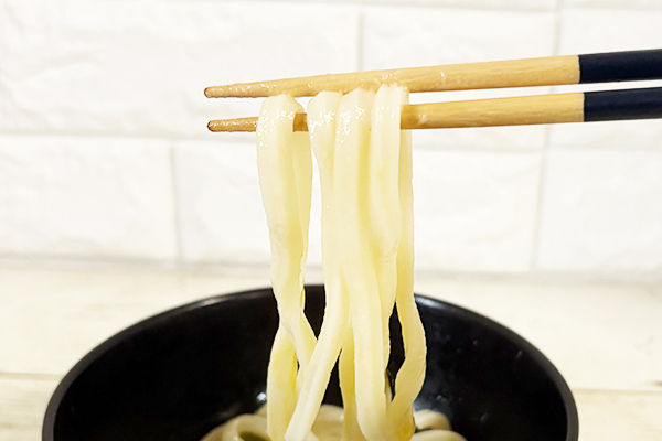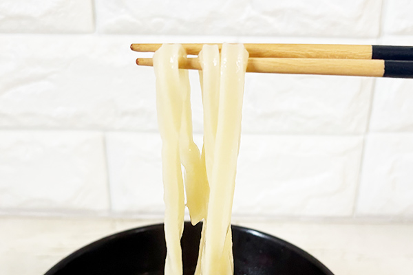 レンジ調理とは思えないほどの強いコシともちもち感、そしてなめらかなのどごし。
