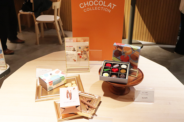 まず注目を集めたのが〈シェ・シバタ〉。国内外で活躍するパティシエ・柴田武氏によるブランドで、素材の魅力を最大限に引き出した洗練されたショコラが並びます。