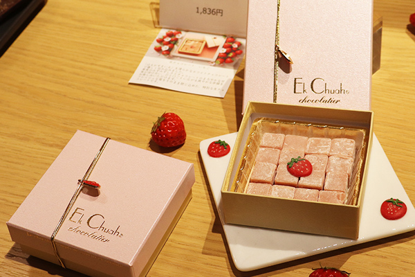 近鉄百貨店が育てた大阪いちご「はるかすまいる」を使用したコラボレーションチョコレートも大きな見どころの一つ。爽やかな酸味がチョコレートと好相性で、生チョコレートやチョコレート菓子、キャラメルと組み合わせた商品など、ここでしか味わえない限定商品がそろいました。