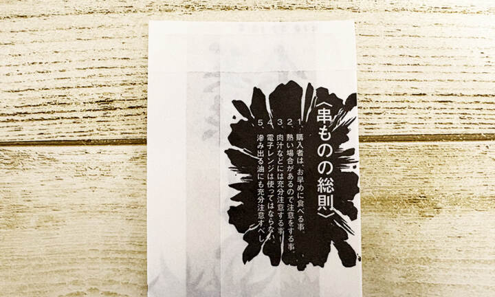 ジャンボフランク、鶏つくね串、アメリカンドッグ、ころチキ棒を購入すると、『死滅回游』×ファミリーマートオリジナルデザインの串もの袋(全2種)で提供されます。袋には“総則(ルール)”風のコピー「美味しく食すべし」とともに、虎杖悠仁・伏黒恵、虎杖悠仁・脹相のビジュアルがデザインされています。