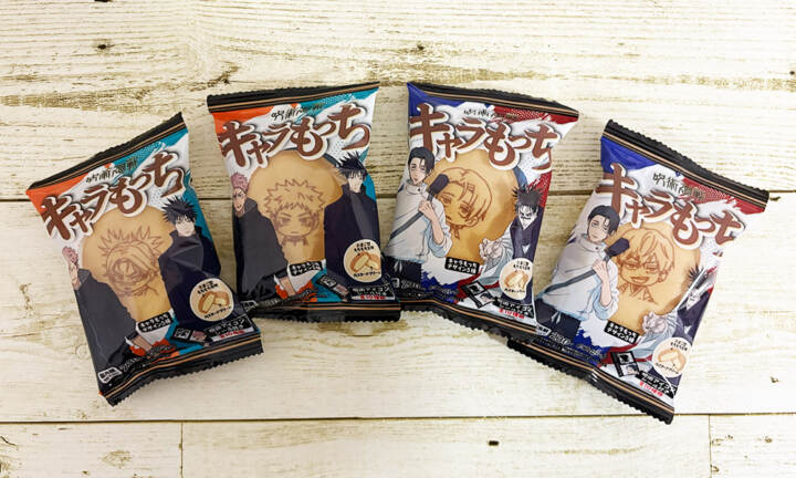 『死滅回游』デザインのパッケージが目を引く「呪術廻戦 キャラもっち」。全2種のパッケージはいずれもコラボ感が高く、売り場でも存在感があります。