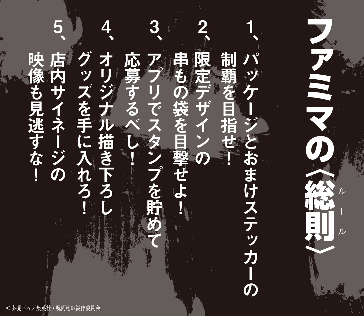 2026年1月13日(火)より、全国のファミリーマートでアニメ『呪術廻戦』第3期『死滅回游 前編』とのコラボキャンペーン「ファミマの総則(ルール)」がスタートします。