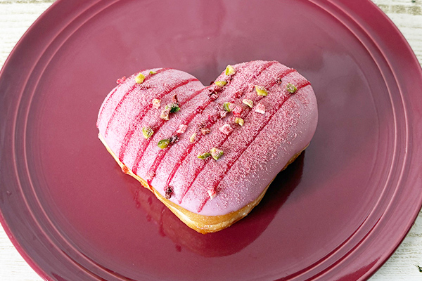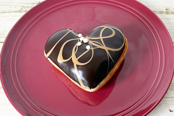 今年のバレンタインでは、ビターチョコレートにベネズエラ産カカオマスを使用しています。ナッツのような香ばしい風味と深いコクが特徴で、ドーナツでありながら、ショコラトリーのチョコレートのようなリッチな味わいを楽しむことができます。