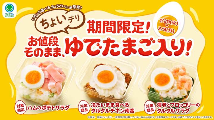 期間限定:人気の「ちょいデリ」に“ゆでたまご”を価格そのままトッピング