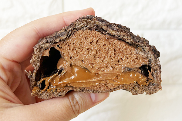 ビスケット生地からして、しっかりヘーゼルナッツの香ばしさ。中にはヘーゼルナッツホイップとチョコクリーム。