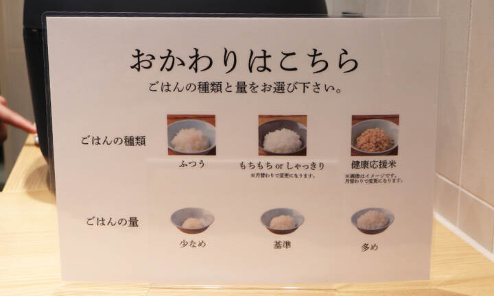 基本の白米に加え、日替わりで玄米も用意。健康志向のお客様からも好評を得ており、食の選択肢を広げています。