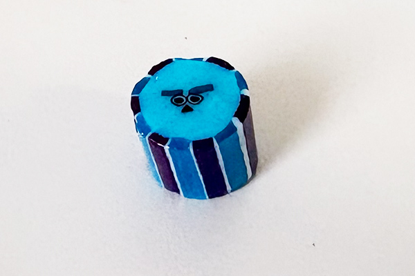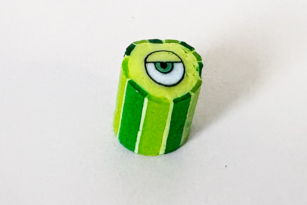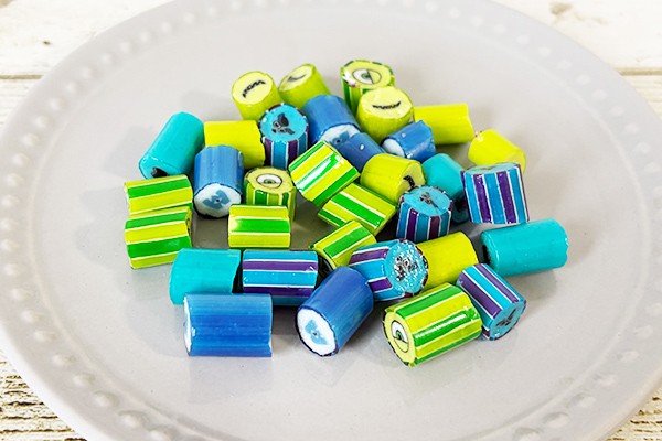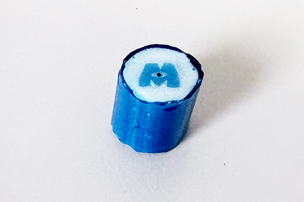 「サリー」や「マイク」、ロゴアイコンが小さなキャンディの中にしっかり描き込まれており、思わず断面をじっと眺めてしまいます。
