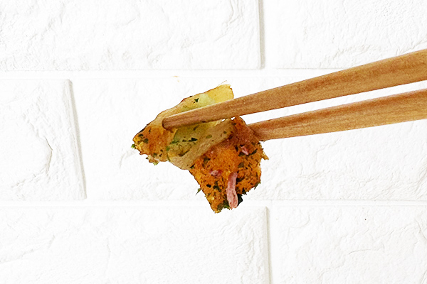 仕上げは、通常比約130%に増量された“青のり&紅ショウガふりかけ”。青のりの磯の香りと紅ショウガの爽やかな酸味が、濃厚ソースの輪郭をよりくっきりと引き立てます。