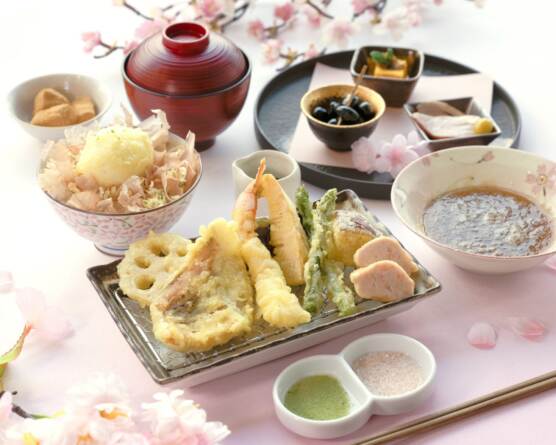 【天ぷら こぎつね】枚方・天の川の桜並木を望む特等席で! 期間限定「天ぷらランチコース 桜」を3月16日(月)から販売
