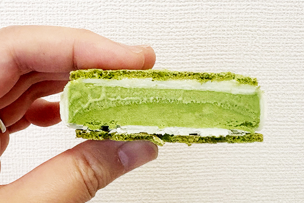 抹茶の奥深いコク、ホワイトチョコのやさしい甘さ、ウエハースの香ばしさ。すべてが高いレベルでまとまった、まさに王道のクリスピーサンドです。