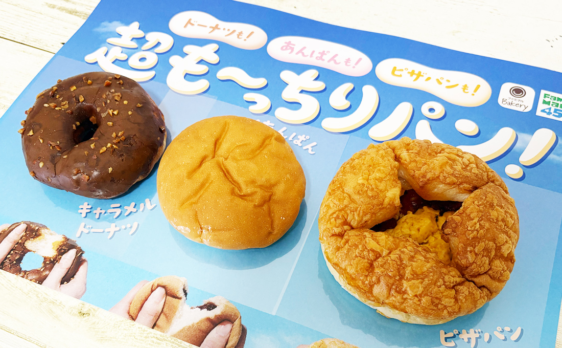 今回ラインナップされたのは、「も~っちり食感キャラメルドーナツ」「も~っちり食感ホイップあんぱん」「も~っちり食感ピザパン」の3種類。どれも定番人気のパンをベースにしながら、これまでにないレベルの“もっちり”を追求したのが最大の特徴です。