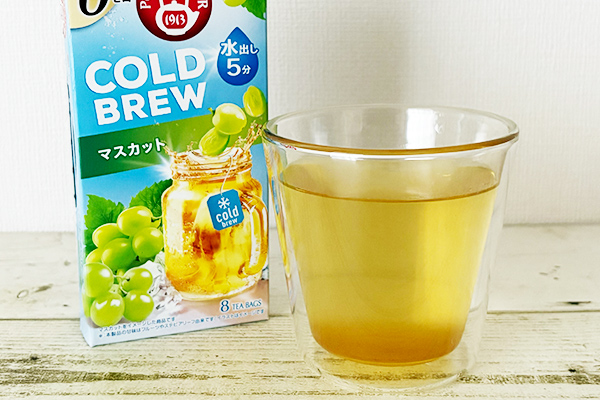 ①「コールドブリュー マスカット」を水で10分ほど浸出する。