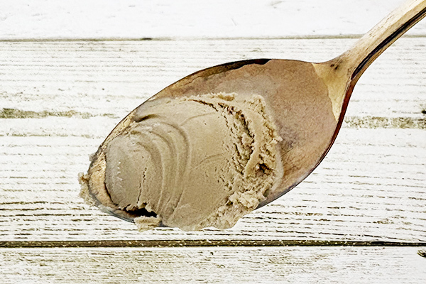 スプーンを入れた瞬間から、ほうじ茶特有の香ばしい香りがふわっと立ち上がります。使用されているのは、石川県・金沢発祥の希少な加賀棒ほうじ茶。茶葉ではなく茎を焙じたお茶で、苦みや渋みが少なく、やさしい甘みと芳醇な香りが特徴です。