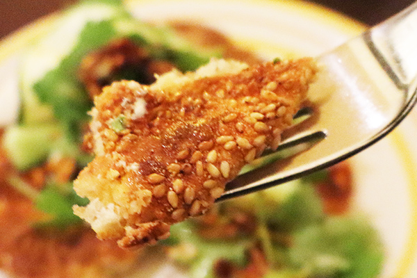 日本でおなじみの“鯖”をベースに、中国・新疆のスパイス(クミンやフェンネル)を効かせ、さらにバジルや芹を重ねた一皿。和・中央アジア・イタリアの要素が自然に溶け合い、これまでにない味の広がりを感じます。“異文化ミックス”でありながら、どこか落ち着く味わいは、まさにbillsならでは。