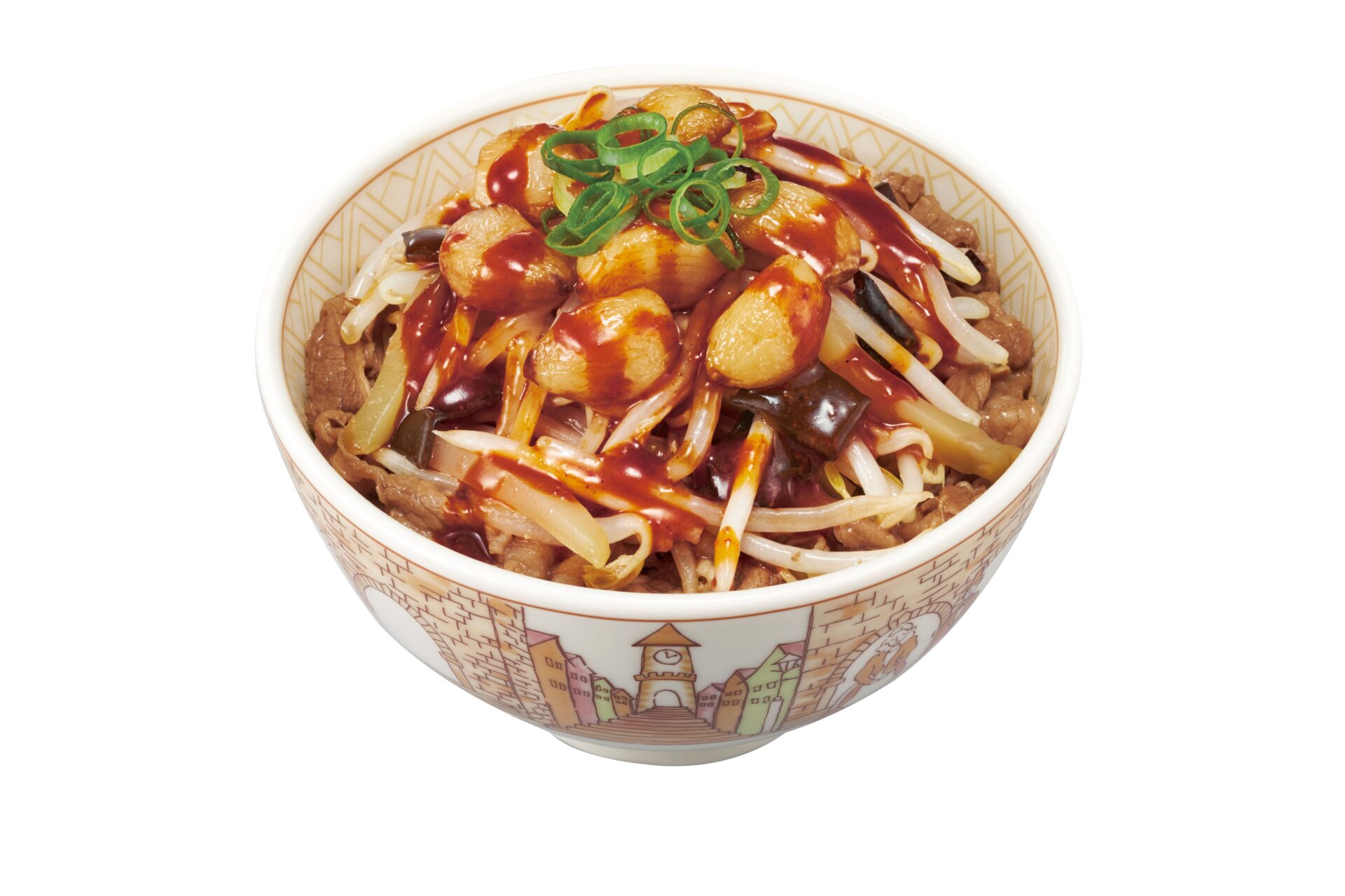 【すき家】シャキシャキ、コリコリ、やみつき食感!しびれる辛さの「麻辣もやし牛丼」新登場!