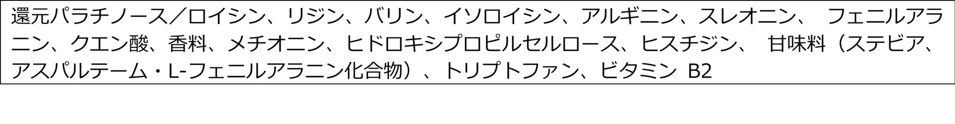 還元パラチノース:国内製造、 EAAlpha:米国