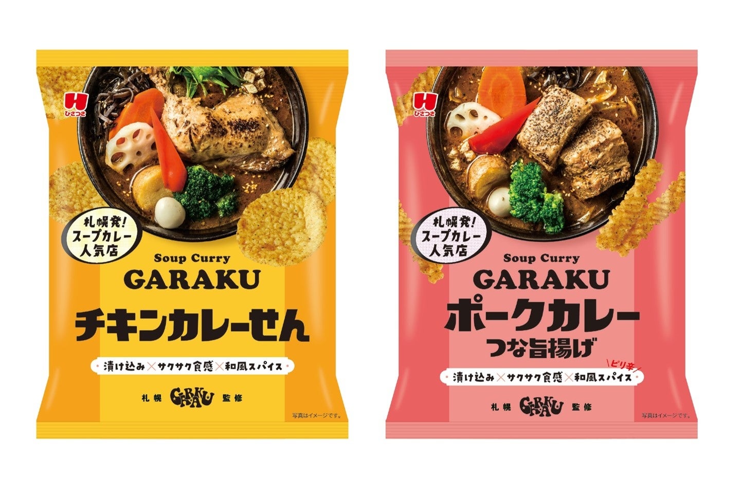 株式会社GARAKU RETAIL(本社:北海道札幌市 代表取締役:千葉新)とひざつき製菓株式会社(本社:栃⽊県栃⽊市、代表取締役:膝附 武男、以下 ひざつき製菓)は、札幌で⼤⼈気のスープカレー専門店「GARAKU」をイメージしたお菓子『GARAKUチキンカレーせん』『GARAKUポークカレーつな旨揚げ』をコラボレーションにより商品化、ひざつき製菓から2023年6⽉上旬より全国のセブン-イレブンにて先⾏販売いたします(7⽉より順次全国のコンビニ・スーパーにて⼀般発売予定)。