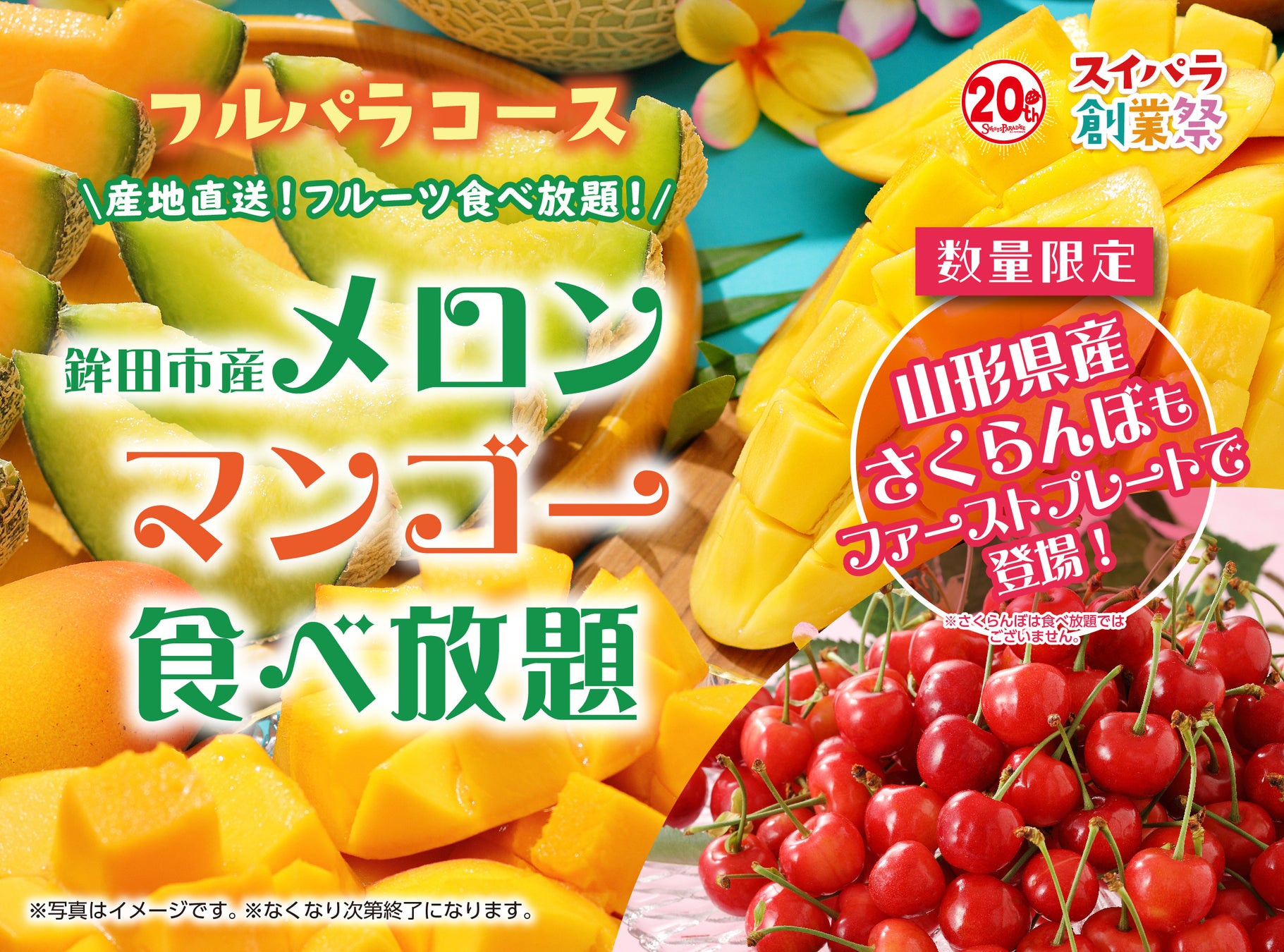 2023年6月15(木)からのフルパラコースでは「山形県産さくらんぼが新登場!鉾田市産メロン&マンゴー食べ放題」を開催いたします。