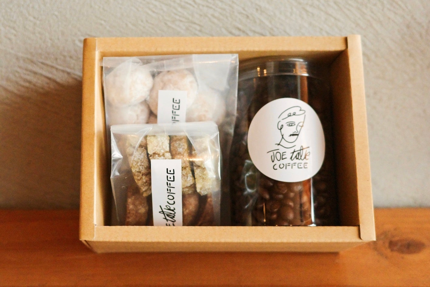 JOE TALK COFFEEの香り豊かな自家焙煎コーヒーと、併設する店内の工房で焼き上げるクッキーのセットを2種類ご用意しました。
