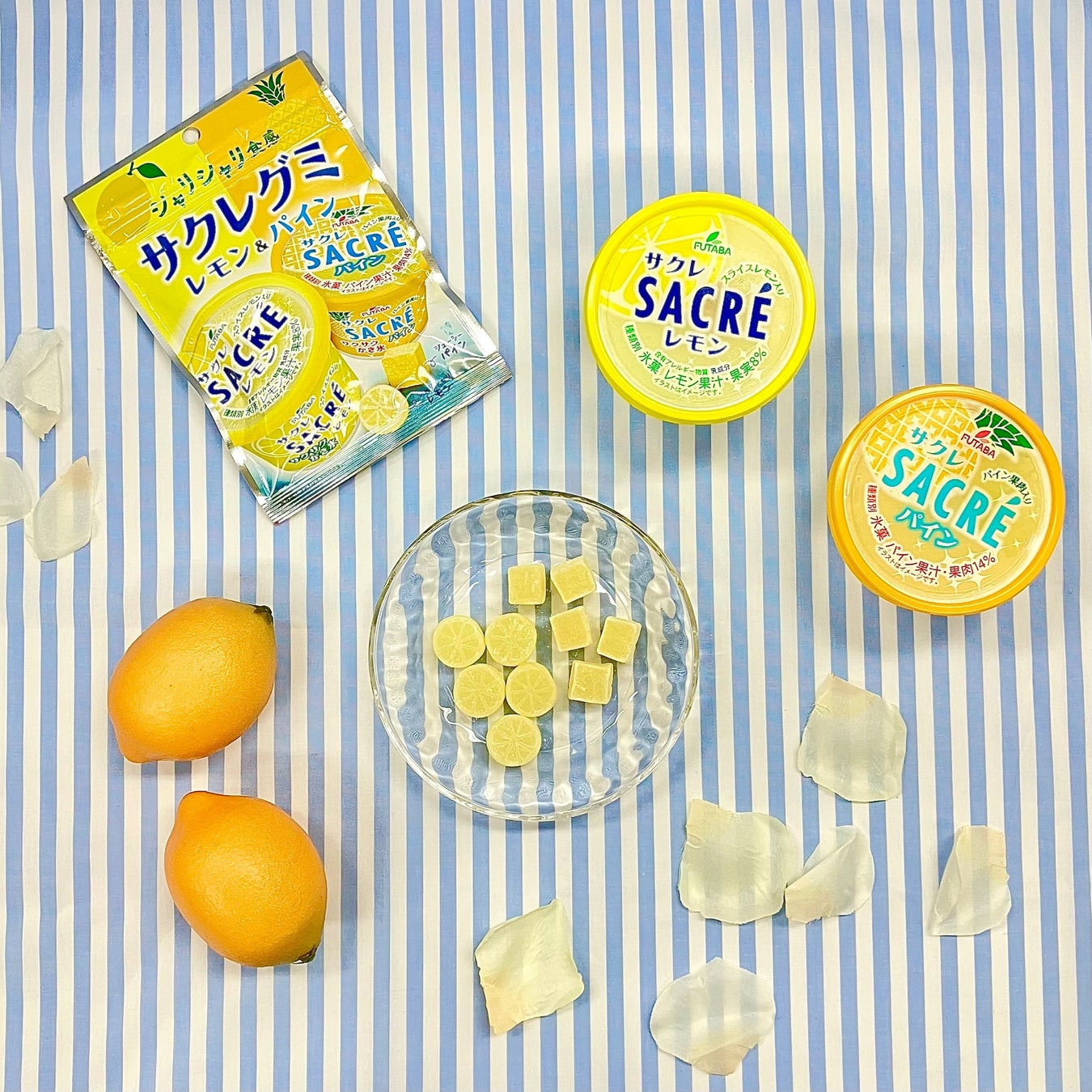 渋谷で一番売れた「サクレグミ」にパイン味が仲間入り!ロフト主催で行われた「グミウィーク2023春」にてロフト渋谷店の売上部門1位を獲得した「サクレレモングミ」。この度新フレーバーのパイン味とともに、「サクレグミ レモン&パイン」の2種アソート商品として発売致します。レモングミは輪切り型、パイングミはダイス型にし、サクレに入っている果実を再現!シャリシャリとした食感と、レモンとパインの爽やかなフレーバーが暑い夏にぴったりです♪