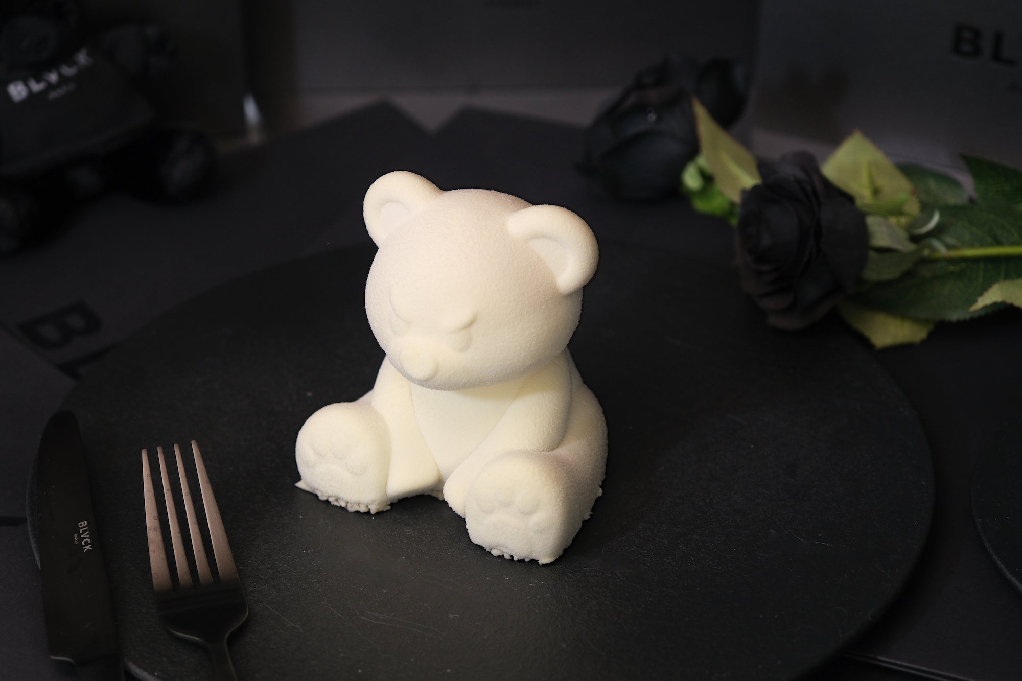 Instagram総フォロワー数120万人超のフランス発祥ラグジュアリーブランド「BLVCK PARIS(ブラックパリ)」。日本限定販売となるオリジナルスイーツに新作が登場します。今回は可愛らしい造形の「黒と白のテディベアケーキ」です。キリッとした表情でありながら鼻がハート型になっているなど、大人の遊び心を感じるデザインです。