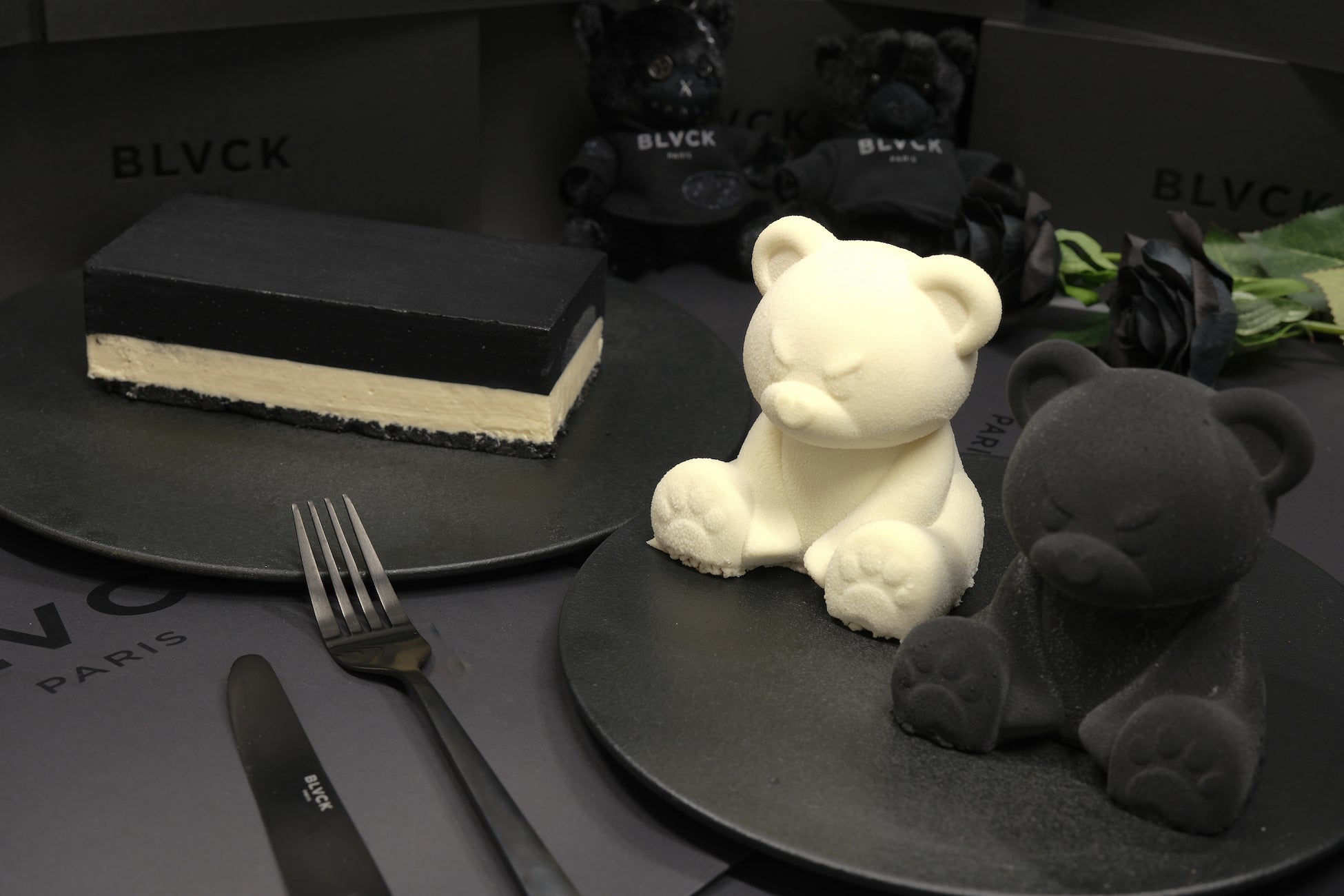 ■新作スイーツは黒と白のテディベア&モノトーンのチーズケーキ