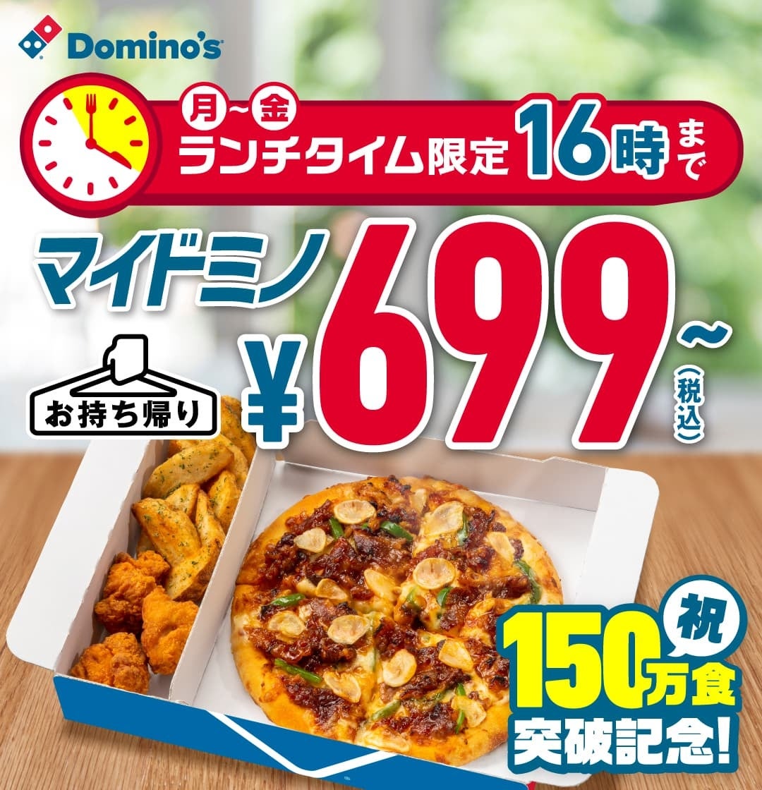 内容:【お持ち帰り限定】各店舗の開店時間から16時まで、「マイドミノ」が全品699円~