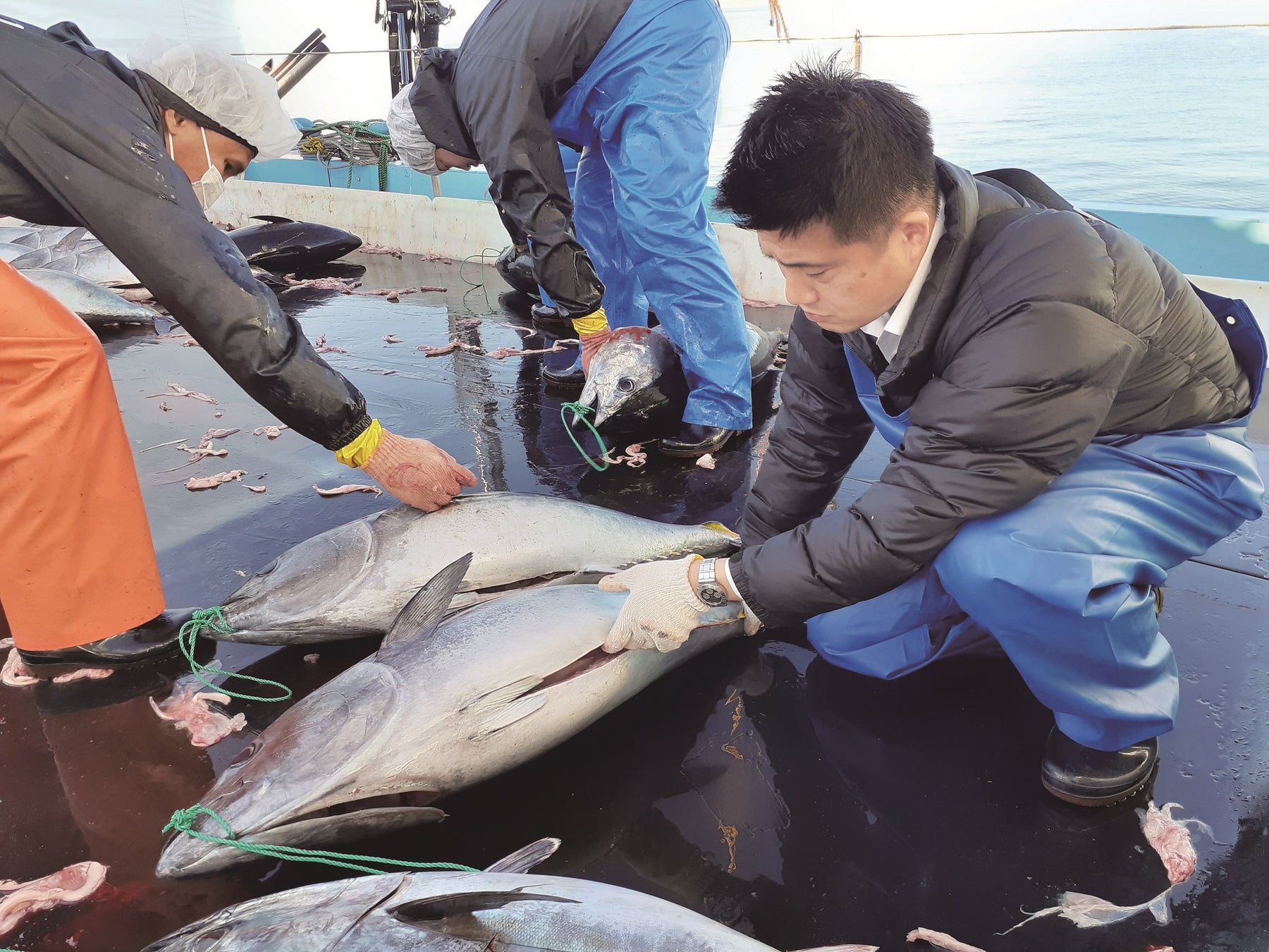 まぐろの仕入れを担当する山上は、スシローのネタへのこだわりを知り、入社を決意した元水産会社のトップ営業マン。天然の「まぐろ」は産地や時期の違いはもちろん、同じ船で獲れたまぐろであっても、その個体ごとで質が違う。厳選したまぐろをひとりでも多くのお客様に食べていただきたいと、現地に赴き、自らの目で品質を見極め、まぐろを目利きする。