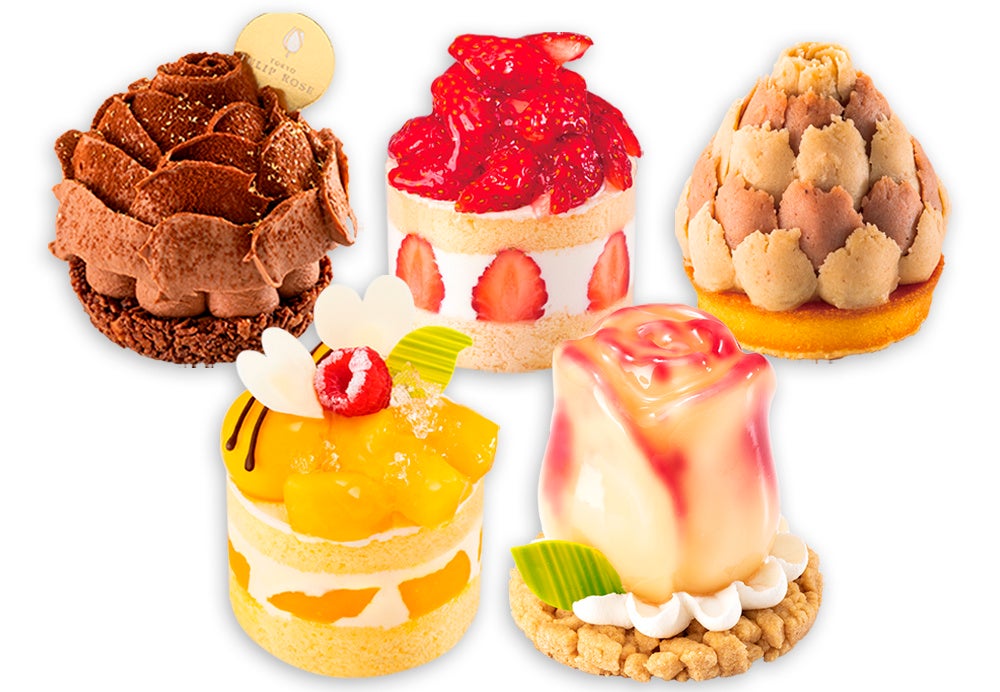 可愛いチューリップ&ローズを、本格味で召しあがれ!シェフ金井理仁こだわりの、フレッシュケーキコレクション。夏の新作「咲き初めのピーチメルバ」に、トロピカルな「マンゴーとミツバチ」、とろけるコクの「グランローズショコラ」、王道を極めた「チューリップローズショート」と「バラボックリ・モンブラン 和栗&マロン」。個性豊かなプチガトーの数々を心ゆくまでお楽しみくださいませ。