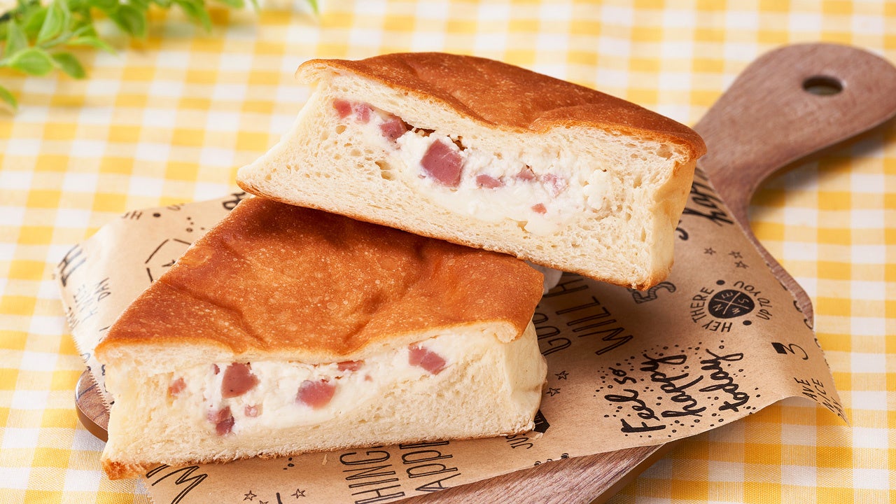 ふんわりとした四角いパンに、角切りのハムとまろやかな味わいのチーズクリームをたっぷりと包みました。朝食や小腹が空いたときにぴったりの美味しさです。