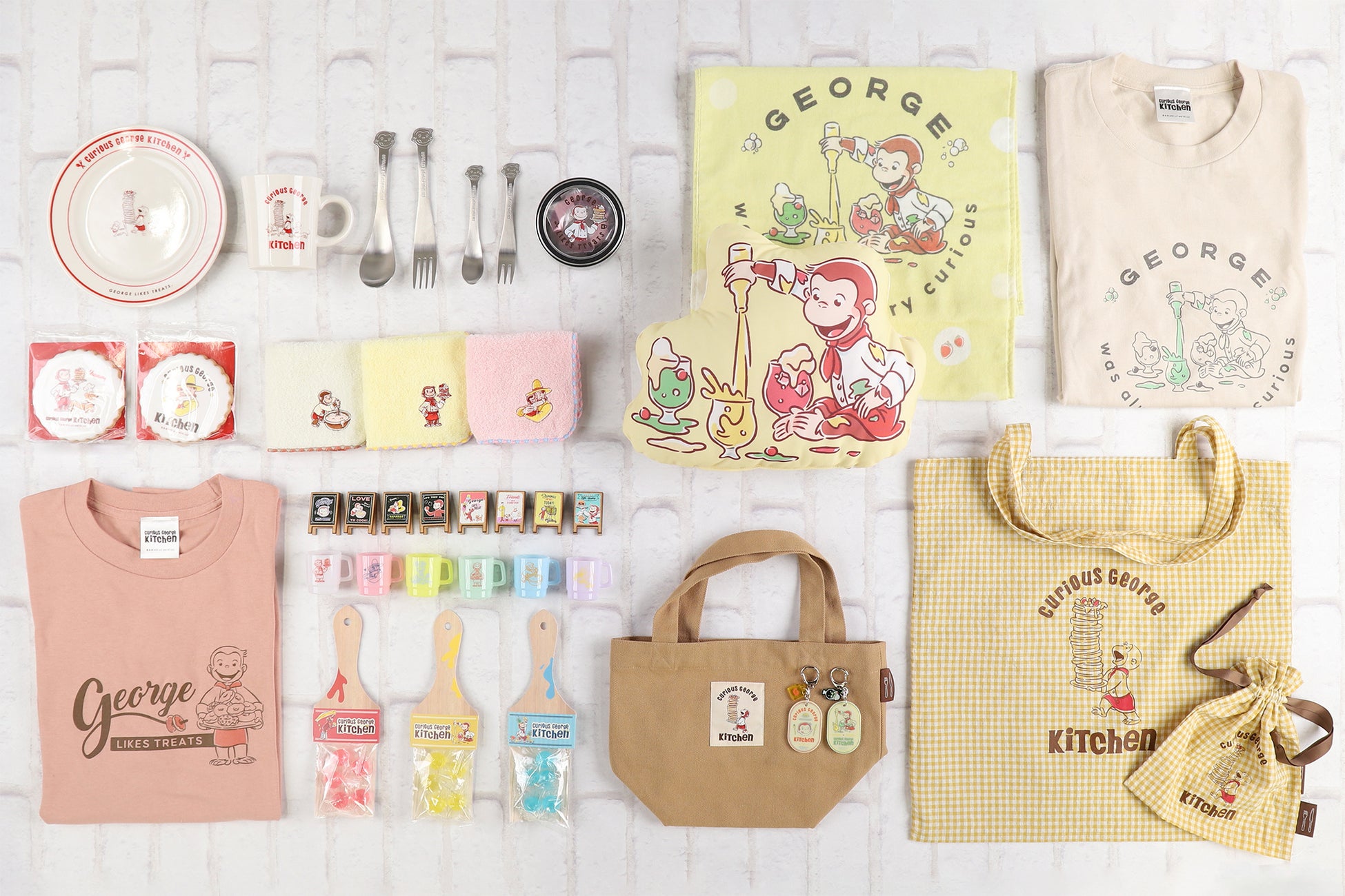 また、カフェご利用時以外でも購入可能なオリジナルグッズには、オリジナル新アートを使用したアイテムを中心に、ジョージと仲間たちと日々を楽しく過ごせる商品が登場いたします。この夏も好奇心いっぱいのジョージと一緒に楽しく過ごせる「Curious George Kitchen」にどうぞご期待ください。