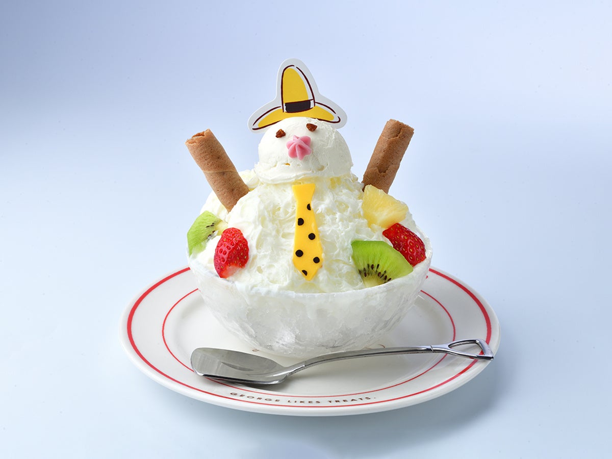 メニュー名:黄色いぼうしのおじさん?いろどりフルーツのかき氷!