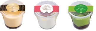 おこさまから大人まで幅広くご支持いただくお持ち帰りスイーツの人気商品『プレミアムプリン』、2023年5月より登場した『いちご練乳の杏仁豆腐』と『宇治抹茶のプレミアムプリン』の3種類を販売中です。ご自宅でのスイーツタイムやちょっとした手土産、ギフトにぴったりです。