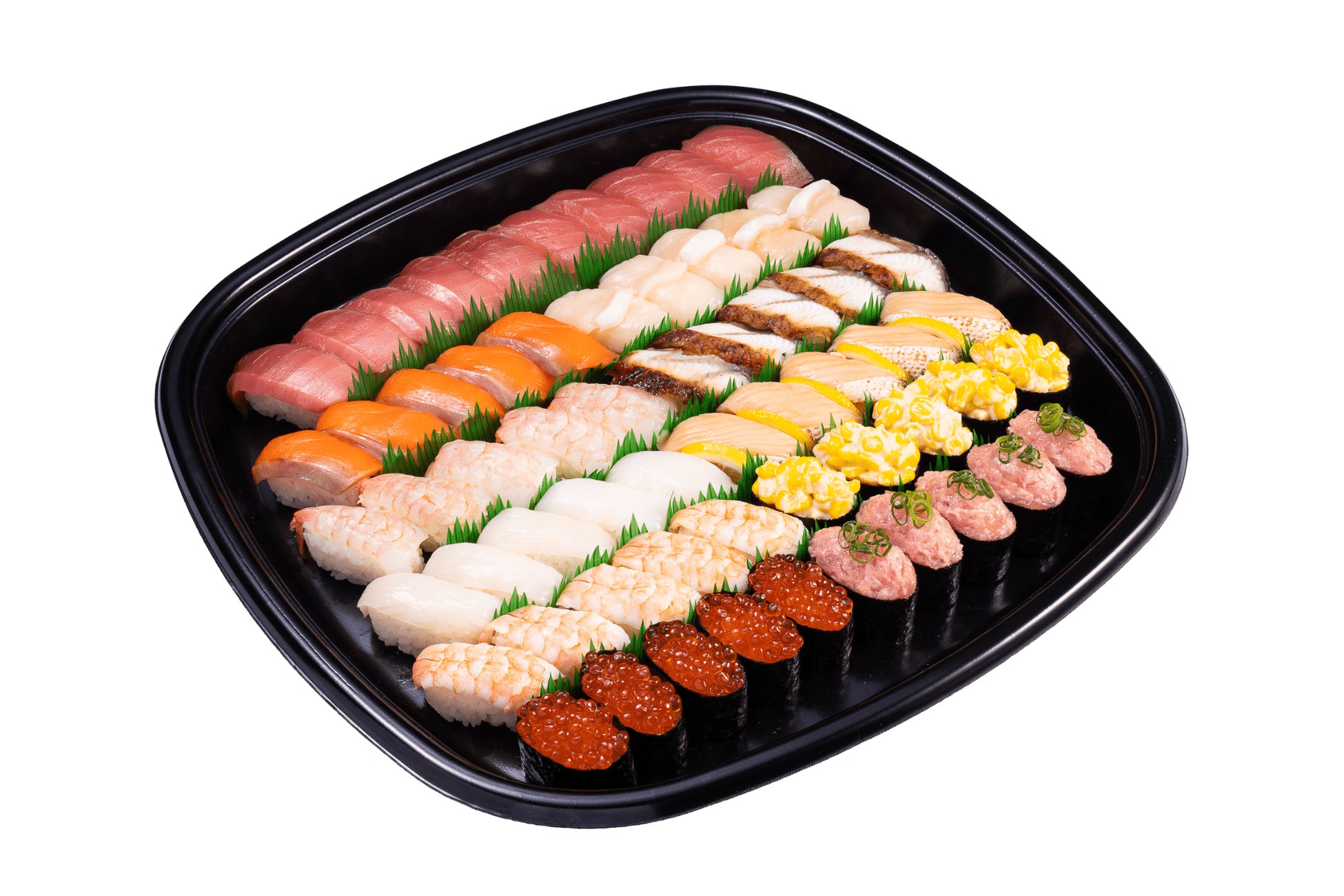 夏に食べたい「うなぎ」や、ちょっと贅沢な盛り具合の「特盛いくら」「特盛ねぎとろ」、人気ネタの「まぐろ」「中とろ」などを詰め合わせました。おこさまにも人気のサーモンやえび、感動コーンなども入った“みんなのごちそう”セットです。