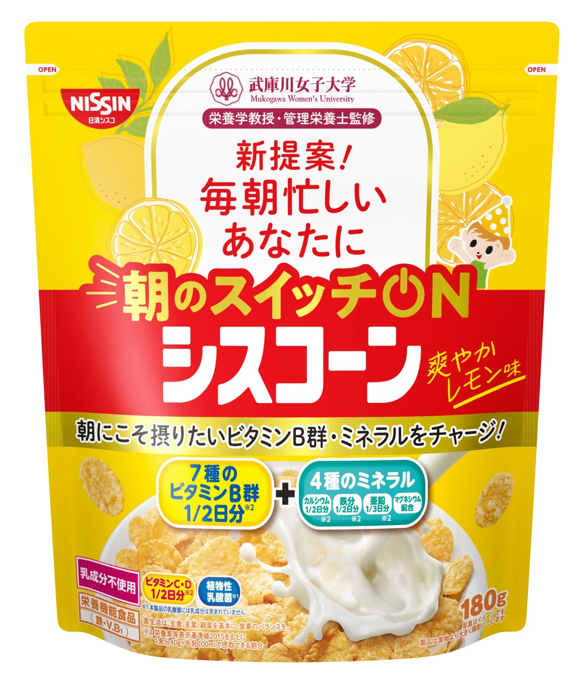 毎日を元気に過ごすためには、ビタミンB群やミネラルを糖質と一緒に摂ることが大切と言われています。そこで今回、武庫川女子大学の食物栄養科学部の教授・管理栄養士が監修し、ビタミンB群やミネラルなどを配合した「朝のスイッチON シスコーン 爽やかレモン味」を期間限定で発売します。