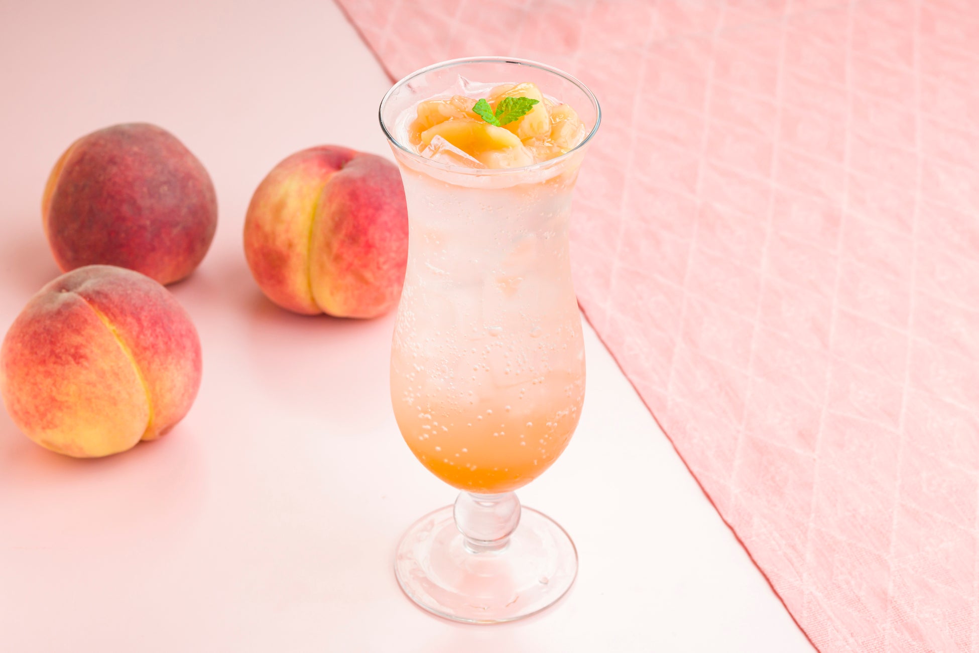 旬の桃をのせた夏にぴったりなスカッシュ。